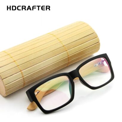 Montures de lunettes en bois de bambou pour hommes, verres rectangulaires surdimensionnés pour la lecture.