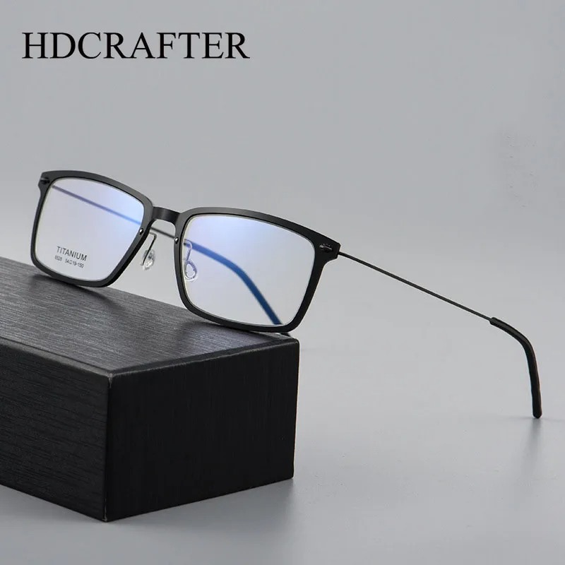 Étiquettes : Bleu-Transparent, Gris-Transparent, HDCRAFTER, lentilles optiques, lunettes sans vis, Monture de lunettes carrée pour hommes, montures de lunettes, Noir, Noir-Or, Titane, titane pur ultraléger, Transparent